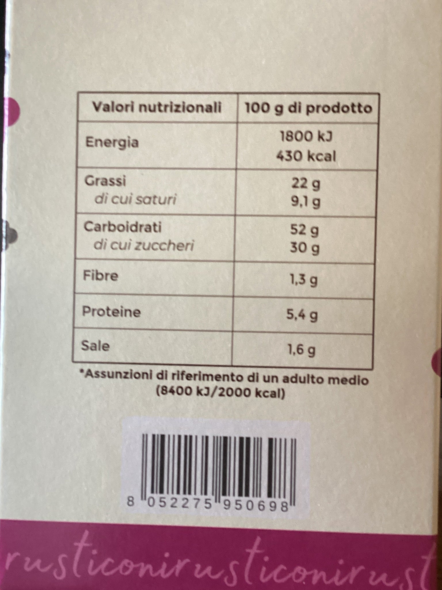Contiene allergeni: glutine, prodotti a base di latte, noci, uova.